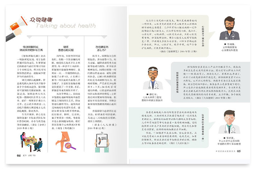 《愛你·健康讀本》的主要欄目:健康觀察、健聞、健心、健體、健情、健談、健腦等;