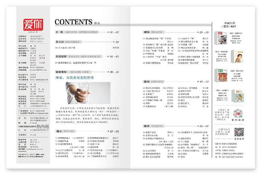 《愛你·健康讀本》的主要欄目有:健康觀察、健聞、健心、健體、健情、健談、健腦等;