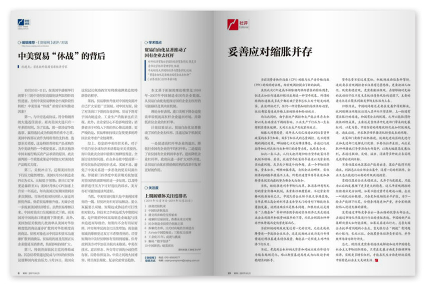 《財經》雜志緊緊把握時代脈搏,所選取知識都是與生活息息相關,很有時代感的知識,講解非常詳細,可讀性強,深入淺出,是一本開闊視野、開拓思維的雜志。一本塑造正確,健康的價值觀的雜志,多年以來始終以弘揚人類優秀文化為己任,堅持把社會效益放在首位,努力貼近讀者生活,深受廣大讀者的青睞。