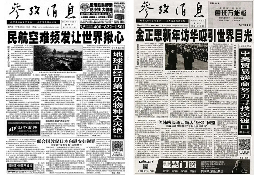《參考消息》主要欄目:時事縱橫、經濟廣角、財經透視、軍事瞭望、科技前沿、社會掃描等。