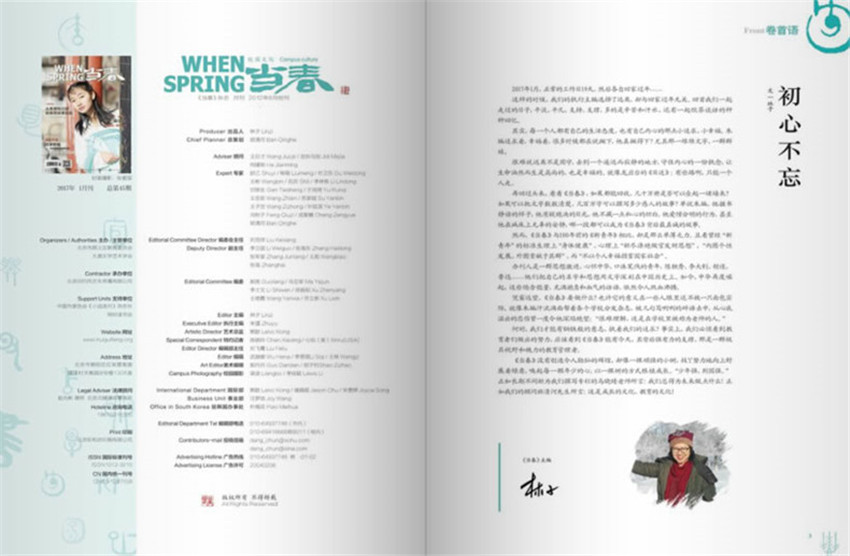 《當(dāng)春》雜志是全國(guó)面對(duì)我國(guó)中學(xué)及中學(xué)生、有國(guó)家正規(guī)刊號(hào)且充分展現(xiàn)中學(xué)校園文化生活的月刊,是由北京順義區(qū)教委與北京回歸風(fēng)文化傳播有限公司聯(lián)合出品,由北京回歸風(fēng)期刊運(yùn)營(yíng)部承擔(dān)策劃、編輯、排版、裝幀設(shè)計(jì)、宣傳發(fā)行
