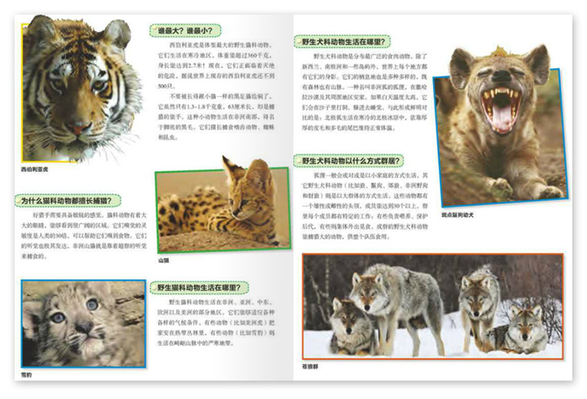 全球視野的指示地圖,讓孩子建立廣闊的知識視域。每章開始前都有一張高清、大幅的指示地圖,告訴孩子接下來所講的內容都發生在哪里。獨特視角的提問+考考你+科學詞匯表,強烈吸引孩子互動。書中每個知識點都以提問的方式提出:禿鷲真的是禿頭嗎?白色的熊都是北極熊嗎?