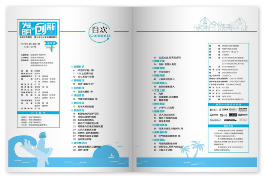 《發(fā)明與創(chuàng)新》(月刊)創(chuàng)刊于1984年,多年來(lái)雜志內(nèi)容及形式方面與時(shí)俱進(jìn),并以其形式和內(nèi)容的豐富性及多樣性,贏得了不同階層讀者的喜愛(ài)與擁護(hù)。主要介紹新潮的科技創(chuàng)意、科技產(chǎn)品和與小學(xué)生生活息息相關(guān)的科技事件或者話題,推薦展示在發(fā)明創(chuàng)新具有一定成績(jī)和影響的發(fā)明小達(dá)人,分享優(yōu)秀科技老師的輔導(dǎo)經(jīng)驗(yàn)和科技創(chuàng)新特色小學(xué)的創(chuàng)新教育經(jīng)驗(yàn)及成果,挖掘鮮為人知的奇聞趣事和科學(xué)新知。