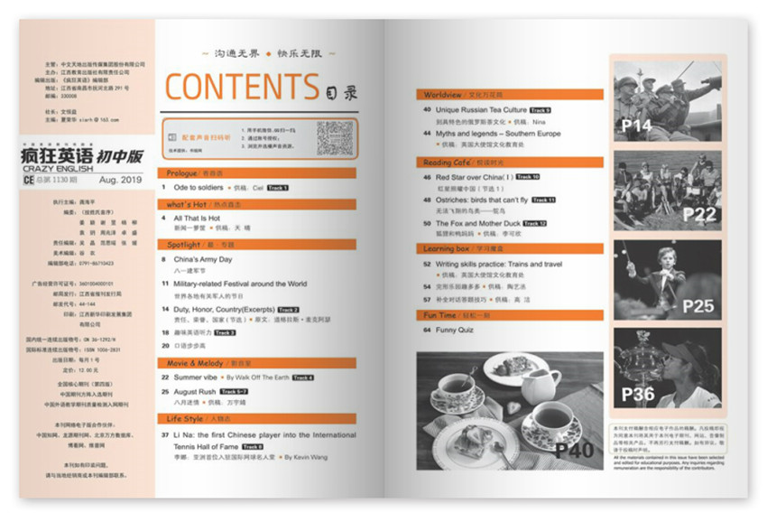 《瘋狂英語》(月刊)創刊于1980年,多年來雜志內容及形式方面與時俱進,并以其形式和內容的豐富性及多樣性,贏得了不同階層讀者的喜愛與擁護。