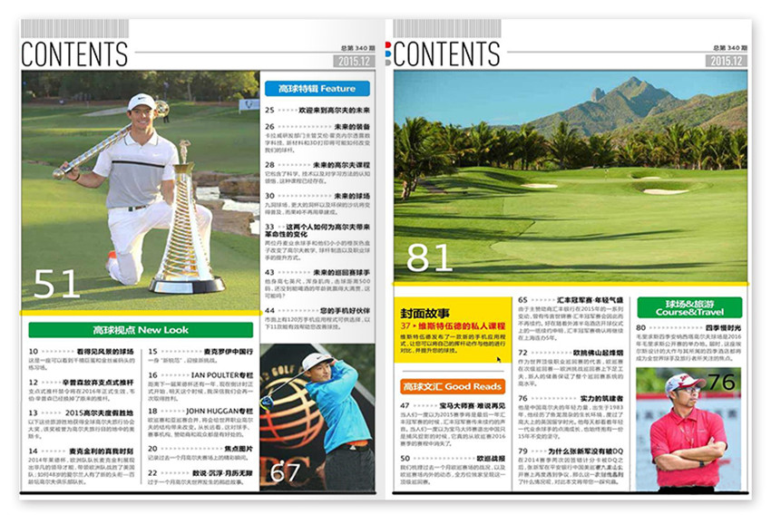 引進(jìn)國外高爾夫刊物版權(quán)的國內(nèi)高球雜志之一,6年的高爾夫類雜志管理經(jīng)驗(yàn),是國內(nèi)具專業(yè)編輯能力的高爾夫?qū)??是國內(nèi)專業(yè)、純粹的高爾夫?qū)?瑖鴥?nèi)訂閱量較大的高球刊物之一。