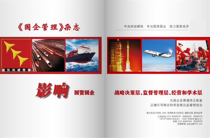 《國企管理》(月刊)創刊于2014年,多年來雜志內容及形式方面與時俱進,并以其形式和內容的豐富性及多樣性,贏得了不同階層讀者的喜愛與擁護。優勢:專注國資國企管理的部級財經媒體在國務院國資委的領導下,《國企管理》由中國企業管理研究會、中國輕工業出版社和國訊環球傳媒共同主辦、出版、發行。