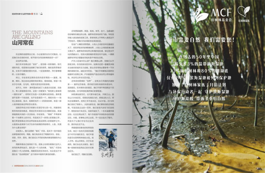 《運動休閑·戶外探險》(月刊)一本倡導健康的新生活雜志,內容以戶外活動、自助旅行和登山探險三部分為主,也是國內第一本以介紹戶外休閑生活為主的實用指南雜志。創刊于2010年,多年來雜志內容及形式方面與時俱進,并以其形式和內容的豐富性及多樣性,贏得了不同階層讀者的喜愛與擁護。