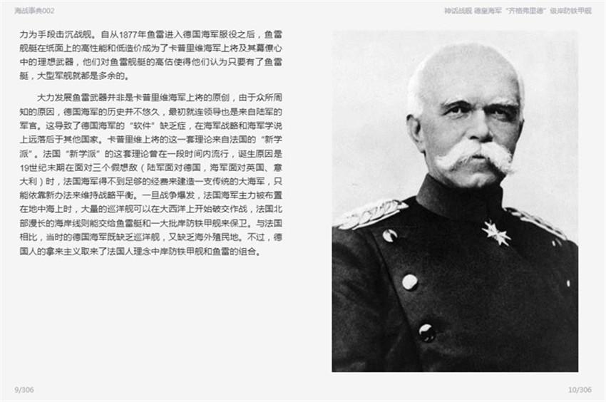 大力發展魚雷武器并非是卡普里維海軍上將的原創,由于眾所周知的原因,德國海軍的歷史并不悠久,初就連領導也是來自陸軍的軍官。這導致了德國海軍的”軟件”缺乏癥,在海軍戰略和海軍學說上遠落后于其他國家。卡普里維上將的這一套理論來自法國的“新學派"法國“新學派”的這套理論曾在一段時間內流行,誕生原因是19世紀末期在面對三個假想敵(陸軍面對德國,海軍面對英國、意大利)時,法國海軍得不到足夠的經費來建造一支傳統的大海軍,只能依靠新辦法來維持戰略平衡。一旦戰爭爆發,法國海軍主力被布置。