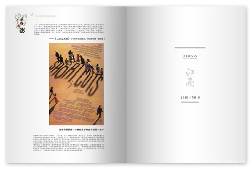 《江南》(雙月刊)創(chuàng)刊于1980年,多年來雜志內(nèi)容及形式方面與時俱進,并以其形式和內(nèi)容的豐富性及多樣性,贏得了不同階層讀者的喜愛與擁護?!督稀分骶幷f:每個人的一生其實都是短暫的,除去學(xué)習(xí)、工作、家庭等等占去的時間,屬于自己的時間又有多少呢?有多少旅行的計劃還沒有實施,又有多少想要體驗的生活還沒有去體驗?