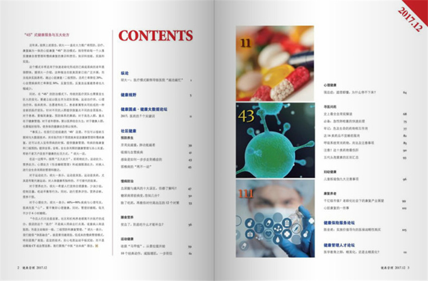 弘揚先進的健康管理理念,提高國民健康素質。用通俗易懂,生動有趣的方式向有健康需求的國民普及健康管理的理念和方法,幫助國民科學地找到并去除減少健康危險因素,以活得更好、更長、更有意義。消費類健康科普期刊。結合日常生活中的健康/疾病預防問題介紹健康管理的相關理念、知識、方法、技能,大量介紹發達國家的先進理論與實踐。