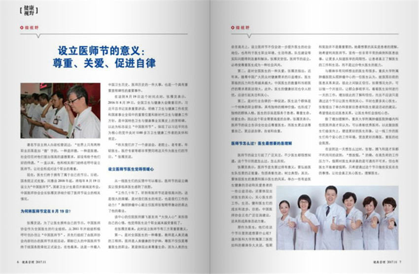 設立醫師節的意義:尊重、關愛、促進自律。著名節目主持人白巖松曾說過:“世界上只有兩種職業后面是加‘德’字的,一種是師德,一種是醫德,社會往往對他們提出很高的道德要求,卻沒有給予他們好的待遇。”一直以來,他和相關部門始終在呼吁設立醫師節,讓社會形成對這個職業的尊重。現在,醫生們終于擁有了屬于自己的節日。日前,國務院正式批復,同意自2018年起,將每年8月19日設立為“中國醫師節”,國家衛生計生委召開新聞會,中國醫師協會會長張雁靈詳細介紹了醫師節設立的相關情況。