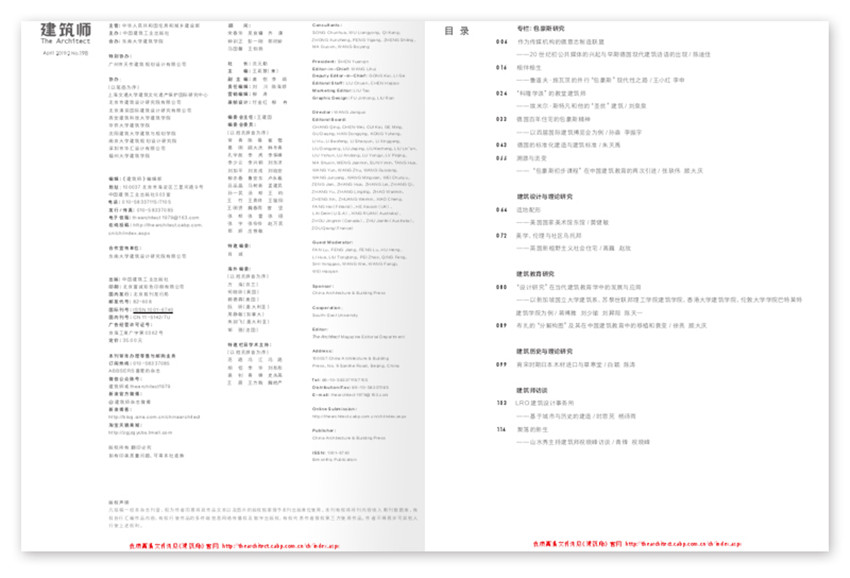 《建筑師》(雙月刊)創刊于2003年,多年來雜志內容及形式方面與時俱進,并以其形式和內容的豐富性及多樣性,贏得了不同階層讀者的喜愛與擁護。