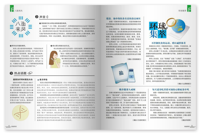 雜志緊緊把握時代脈搏,所選取知識都是與生活息息相關,很有時代感的知識,講解非常詳細,可讀性強,深入淺出,是一本開闊視野、開拓思維的雜志。一本塑造正確,健康的價值觀的雜志,多年以來始終以弘揚人類優秀文化為己任,堅持把社會效益放在首位,努力貼近讀者生活,深受廣大讀者的青睞。