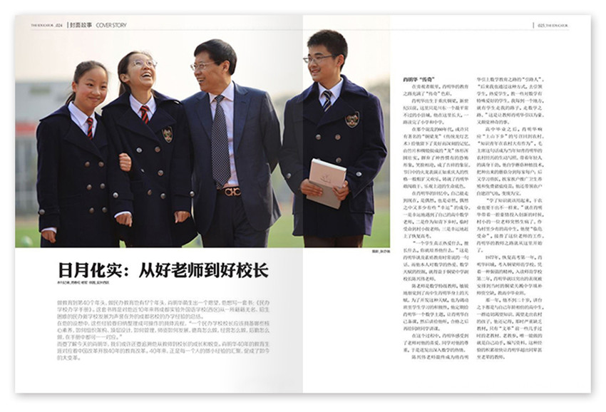 《時(shí)代人物·新教育家》雜志(原名《時(shí)代教育·教育家》)我們沒(méi)有能力告訴你應(yīng)該怎么做,不過(guò)我們也許可以告訴你在這個(gè)最動(dòng)人的領(lǐng)域里我們看見(jiàn)了什么,什么在進(jìn)行,什么在爭(zhēng)論,什么在被思考和嘗試,最重要的是,誰(shuí)在腳踏實(shí)地地做,做什么,怎樣做,誰(shuí)在愛(ài)孩子疼未來(lái),誰(shuí)在呼告和奔走。在我們看來(lái),他們是走在路上的中國(guó)教育家,是我們濃墨重彩的所在。