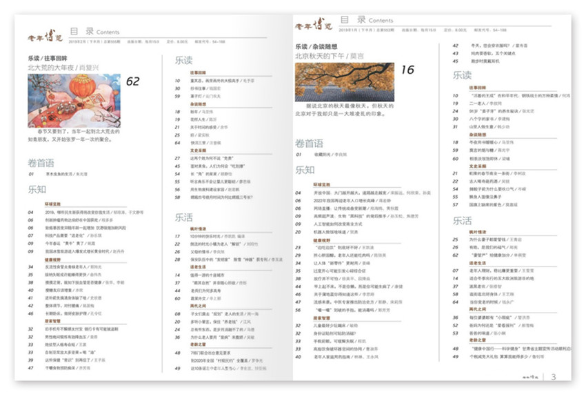 《老年博覽》主要欄目:金秋頌歌、往事漫憶、雜談隨想、科學養生、快樂生活等。