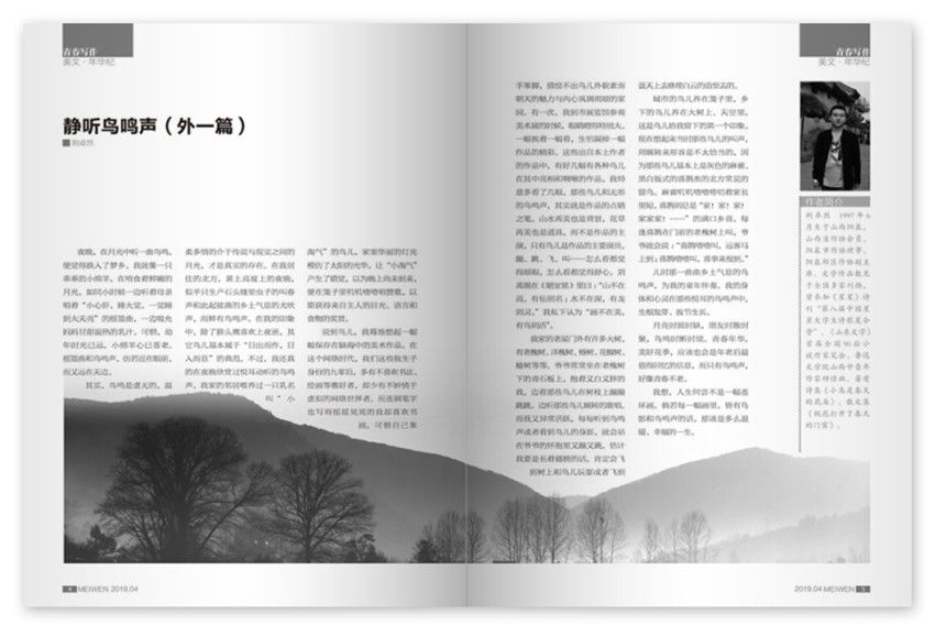 《美文》(月刊)創(chuàng)刊于2000年,多年來雜志內(nèi)容及形式方面與時(shí)俱進(jìn),并以其形式和內(nèi)容的豐富性及多樣性,贏得了不同階層讀者的喜愛與擁護(hù)。它既是專門針對(duì)中學(xué)生課外閱讀的純文學(xué)刊物,又是漢語寫作向少年的一種有力延伸。