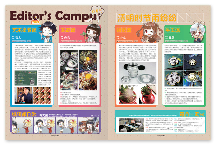 《江門文藝·動漫潮流志》主要欄目:動.播客、包羅漫有、天朝制作、HOTREAD、COS專區。