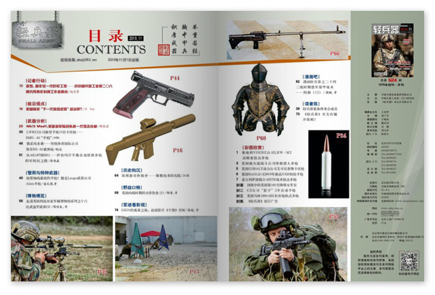 《輕兵器》(月刊)創刊于1978年,多年來雜志內容及形式方面與時俱進,并以其形式和內容的豐富性及多樣性,贏得了不同階層讀者的喜愛與擁護。從事輕武器研究、論證和生產制造的專家、學者、科技人員是雜志的主要撰稿人,其文章內涵豐富、思想深邃、知識貫通,使期刊具有極高的專業權威性,在廣大輕武器愛好者中深有影響。