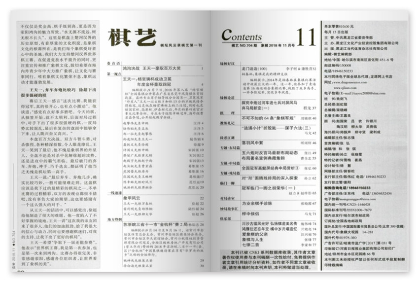 《棋藝》雜志緊緊把握時(shí)代脈搏,所選取知識(shí)都是與生活息息相關(guān),很有時(shí)代感的知識(shí),講解非常詳細(xì),可讀性強(qiáng),深入淺出,是一本開闊視野、開拓思維的雜志。一本塑造正確,健康的價(jià)值觀的雜志,多年以來(lái)始終以弘揚(yáng)人類優(yōu)秀文化為己任,堅(jiān)持把社會(huì)效益放在首位,努力貼近讀者生活,深受廣大讀者的青睞。