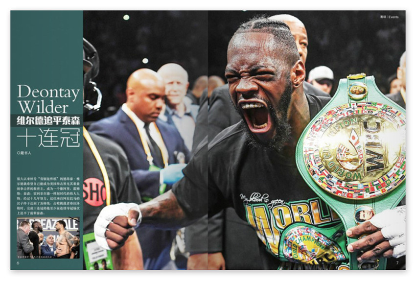 多年來,雜志協辦了幾乎所有在國內舉行的大型職業拳擊及商業搏擊賽事,在行業內有很高的認知度。與此同時,雜志與國際賽事組織及賽事推廣機構長期保持友好往來,雜志曾被WBA(世界拳擊協會)主席門多薩及WBC(世界拳擊理事會)主席蘇萊曼給予極高評價。阿里、泰森、霍利菲爾德、克里奇科等諸多世界職業拳王亦曾為雜志題字寄語。