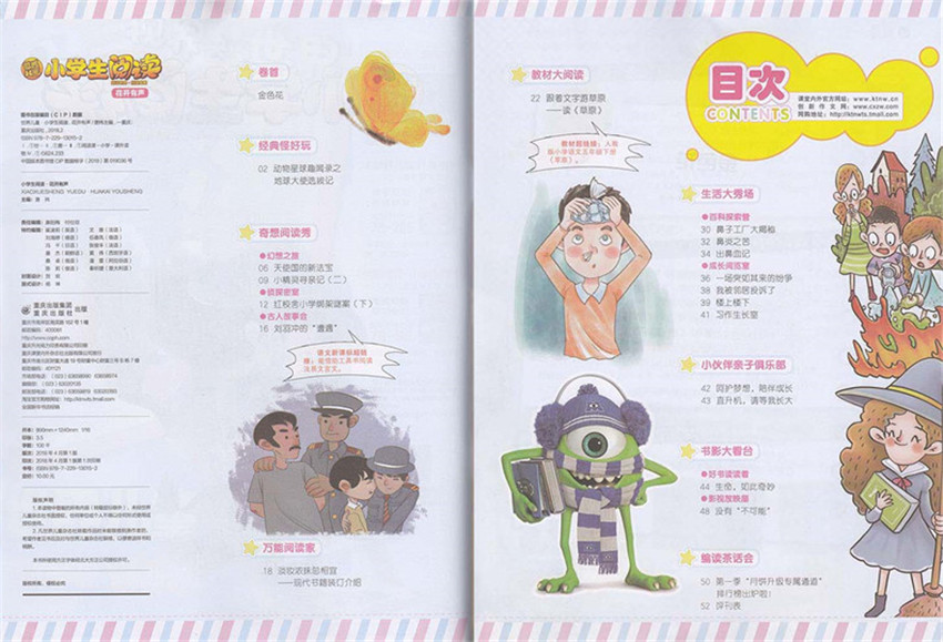 《世界兒童·小學(xué)生閱讀》主要欄目:經(jīng)典小書閣、美文淘寶店、課文連連看、讀寫夢工廠、歡樂QQ堂、開心雙語園。