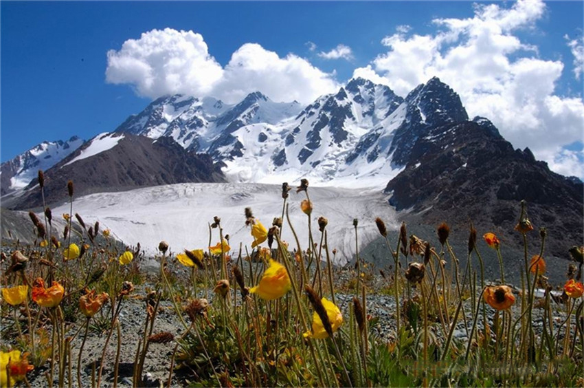 博格達(dá)峰,海拔5445米,是天山山脈東段的一條支脈,從烏魯木齊斷裂帶起,向東一直延伸到巴里坤境內(nèi),全長300多公里。有一則叫《沙勒哈沙曼》的民間故事就有這方面的描述。故事說牧民們把博格達(dá)山稱為“圣人”,而把博格達(dá)山上的石塊視為圣人使用的石頭,用這里的石頭作武器去打擊敵人無往而不勝。由此可見博格山在古代西域民族心中的地位。