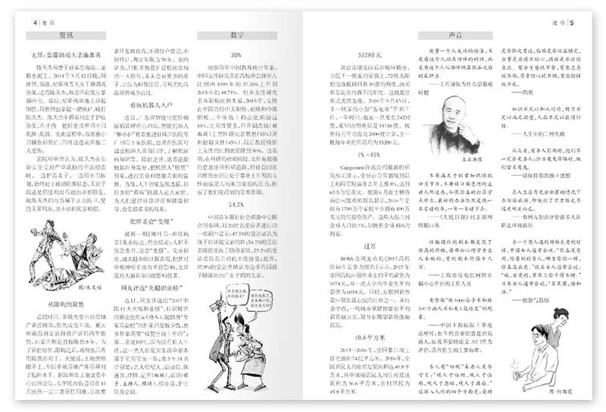 每期從1萬余種書報刊中精選文章,對當前的熱點事件進行深度披露,對各類社會現(xiàn)象展開多角度探析,對新鮮觀點與爭鳴作系統(tǒng)介紹,對紛繁復(fù)雜的人生作哲理性思考,內(nèi)容涉及社會、人生、人物、文史、海外等各類經(jīng)典文章,傳遞有關(guān)為人、立世、創(chuàng)業(yè)、發(fā)展的不朽價值,是你行走社會的生存讀本。