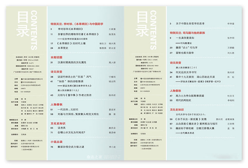 《文史知識》(月刊)創(chuàng)刊于1981年,多年來雜志內(nèi)容及形式方面與時(shí)俱進(jìn),并以其形式和內(nèi)容的豐富性及多樣性,贏得了不同階層讀者的喜愛與擁護(hù)。自創(chuàng)辦以來,一直受到廣大讀者的支持與厚愛。多年來,我們也一直堅(jiān)持在能力有限的范圍內(nèi),普及古代文史知識,弘揚(yáng)中華民族優(yōu)秀的傳統(tǒng)文化,從不同角度、以多樣手法,深入淺出地介紹、評述中華民族的優(yōu)秀傳統(tǒng)文化。