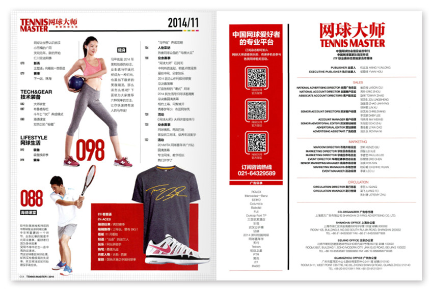 以“大眾性、實用性、時尚性”為定位,緊貼中國實際,傳播中國大眾網球運動;以技術、裝備、網球俱樂部管理、網球專業人才的供需溝通等服務,提升雜志的實用價值。