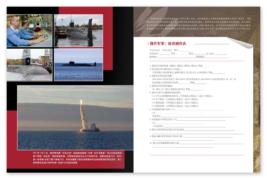 《現代軍事》雜志始終堅持以“傳播軍事信息、普及國防教育、交流軍事技術、促進武器裝備建設、為國防現代化服務”為辦刊宗旨,以其性、導向性、理論性、前瞻性、可讀性,深受軍事、政治、經濟研究人員、軍工貿人員、部隊官兵以及廣大軍事愛好者的喜愛,已成為國內外有影響的、我軍武器裝備與軍事技術領域的性軍事期刊。