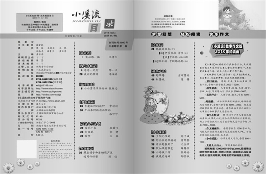《小溪流》里面例如“成長(zhǎng)校園”版主要面向中學(xué)生,以初中生為主,刊發(fā)的作品有情感故事、成長(zhǎng)小說(shuō)、靈性作文、少年美文等;“少年作家”版面向以高中生為主的讀者,主要刊發(fā)青春小說(shuō)、校園詩(shī)歌和散文,是湖南省中小學(xué)文學(xué)社團(tuán)的會(huì)刊。