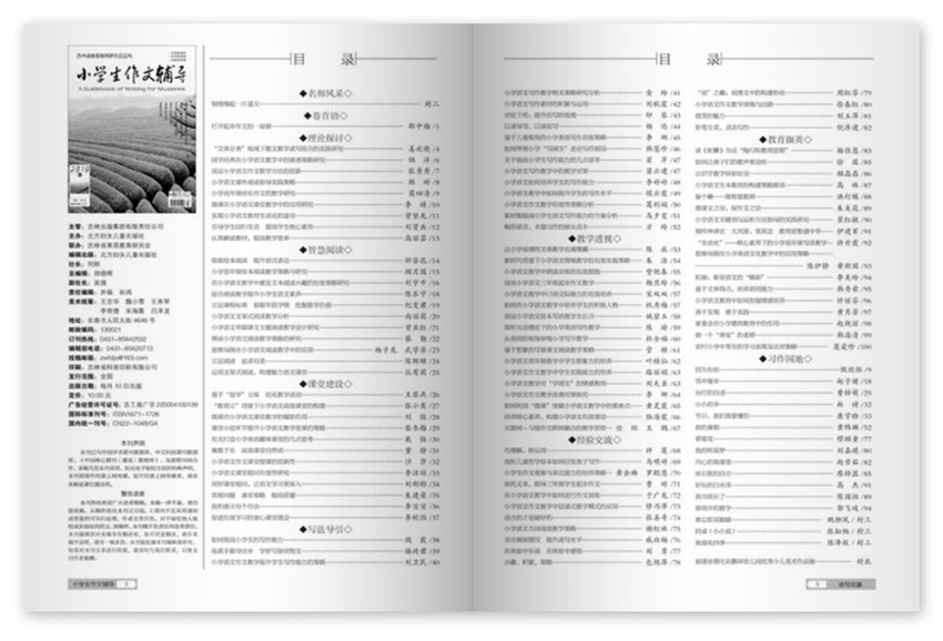 《小學生作文輔導》(月刊)創刊于1985年,多年來雜志內容及形式方面與時俱進,并以其形式和內容的豐富性及多樣性,贏得了不同階層讀者的喜愛與擁護。小學閱讀教學中想象思維的訓練,引聞讀體驗活水博深度理解養成,如何激發小學生的閱讀興趣等;讓閱讀照亮學生前行,誦讀經典詩文,弘揚傳統文化——小學生經典誦讀的探索等。