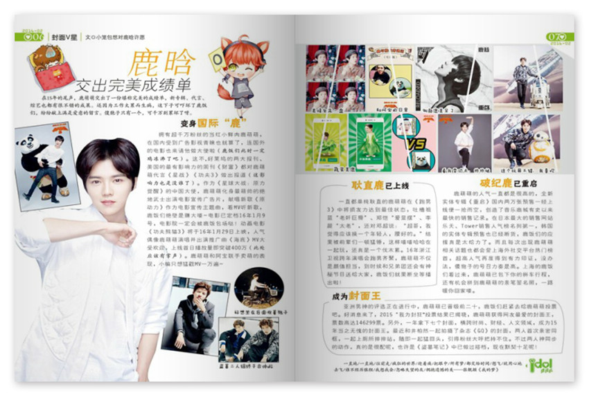 鹿晗交出成績單,在15年的尾聲,鹿萌萌交出了一份堪稱的成績單,新專輯、代言、綜藝也都有很不錯的成果。還因為工作太累而生病,這下子可嚇壞了鹿飯們,紛紛獻上滿是愛意的留言。傻狍子只有一個,可千萬別累壞了呀。變身國際“鹿”擁有超千萬粉絲的當紅小鮮肉鹿萌萌,在國內受到廣告影視青睞也就算了,連國外的電影也來請他做大使啦(鹿飯們此時一定雞凍沸了吧)。