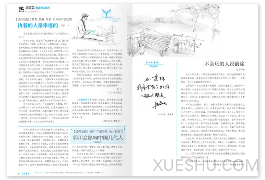 《意林·作文素材》雜志緊緊把握時代脈搏,所選取知識都是與生活息息相關,很有時代感的知識,講解非常詳細,可讀性強,深入淺出,是一本開闊視野、開拓思維的雜志。一本塑造正確,健康的價值觀的雜志,多年以來始終以弘揚人類優秀文化為己任,堅持把社會效益放在首位,努力貼近讀者生活,深受廣大讀者的青睞。