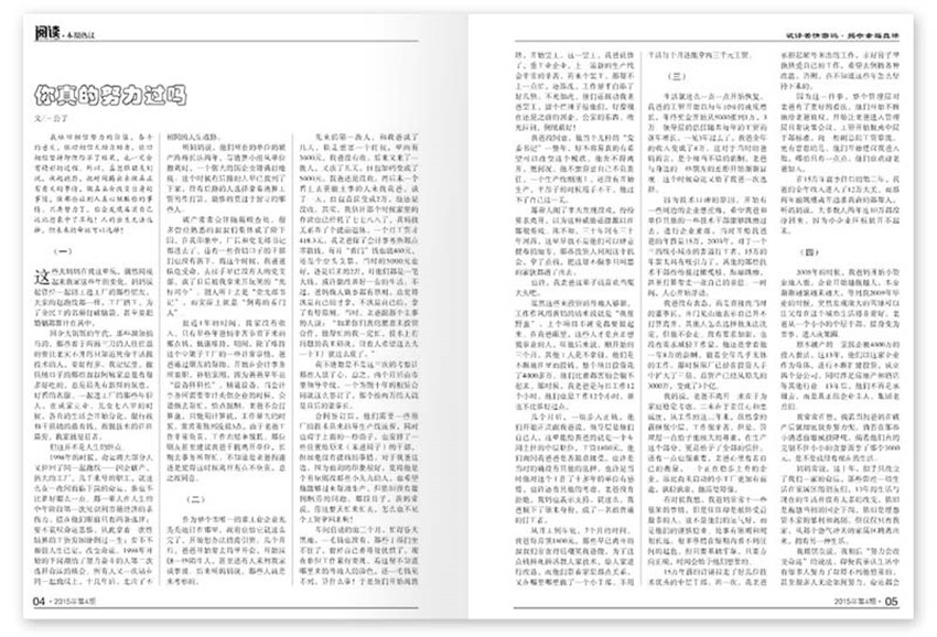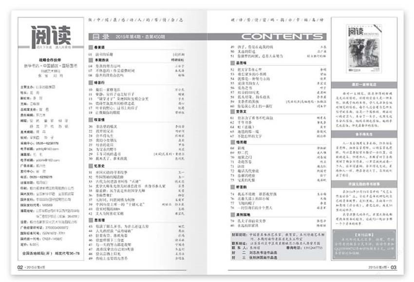 《閱讀》(月刊)創(chuàng)刊于2005年,多年來(lái)雜志內(nèi)容及形式方面與時(shí)俱進(jìn),并以其形式和內(nèi)容的豐富性及多樣性,贏得了不同階層讀者的喜愛(ài)與擁護(hù)。內(nèi)容涵蓋文學(xué)、經(jīng)濟(jì)、歷史、哲學(xué)等方面,引導(dǎo)讀者“閱苦中情,讀情中人”。