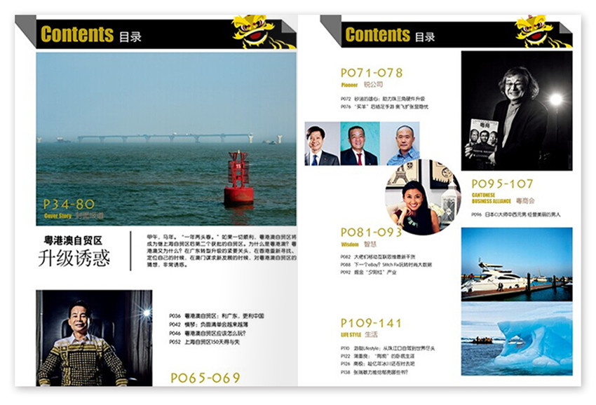 《粵商》主要欄目:活動平臺EVENTS PLATFORM、廣東機會、CANTONESE BUSINESS、智慧WISDOM、封面人物PEOPLE等。