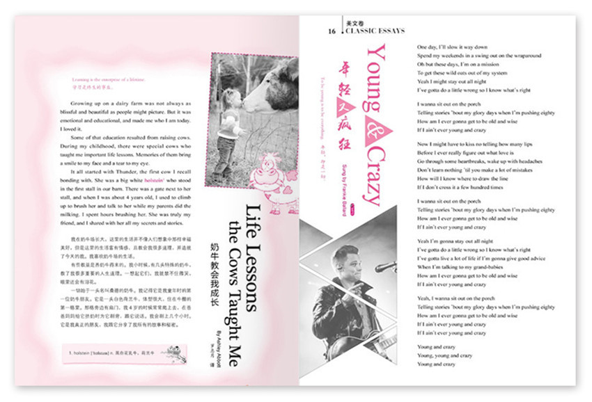 以中學生為主要閱讀群體,定位明確,語言地道,選文經典,雙語對照,視野開闊。追蹤新聞實事和娛樂資訊,是廣大中學生學習英文、獲取信息的良師益友。時尚好玩,精彩紛呈的各類閱讀材料直擊中學生興趣點,培養興趣、熏陶語感。