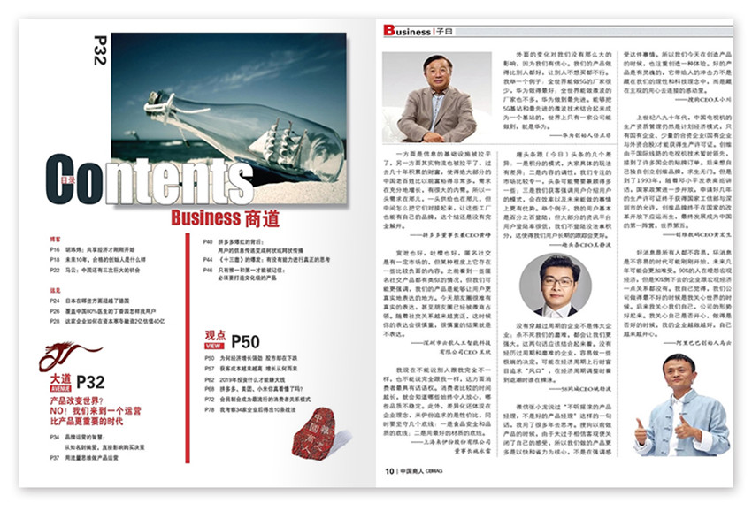 《中國商人》(月刊)創(chuàng)刊于1992年,多年來雜志內(nèi)容及形式方面與時俱進,并以其形式和內(nèi)容的豐富性及多樣性,贏得了不同階層讀者的喜愛與擁護。解讀精英們的財富時尚和獨特的精神追求,反映成功人士階層的欲望與方式、生活與狀態(tài);是面向中國商界精英、領(lǐng)袖人物的品位雜志、人文讀本。
