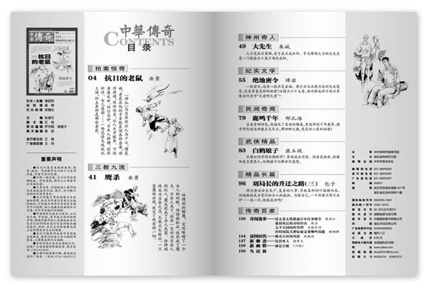 《中華傳奇》(月刊)創(chuàng)刊于1984年,多年來雜志內(nèi)容及形式方面與時(shí)俱進(jìn),并以其形式和內(nèi)容的豐富性及多樣性,贏得了不同階層讀者的喜愛與擁護(hù)。中國大眾文學(xué)經(jīng)典讀本,“大俗大雅,奇情真美,直面人生,無奇不傳”,故事精彩、傳奇,所選人物眾多,帶領(lǐng)讀者了解歷史。
