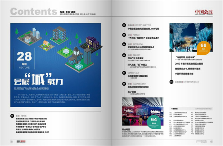 《中國會展》(半月刊)由國家發展和改革委員會主管,是目前中國惟一經國家新聞出版總署批準公開發行的會展業雜志,深度報道業內權威人士,來自展覽現場的一線報道,挖掘會展活動組織背后的特點與特色,對行業重大事件的一手采訪。創刊于2000年,多年來雜志內容及形式方面與時俱進,并以其形式和內容的豐富性及多樣性,贏得了不同階層讀者的喜愛與擁護。