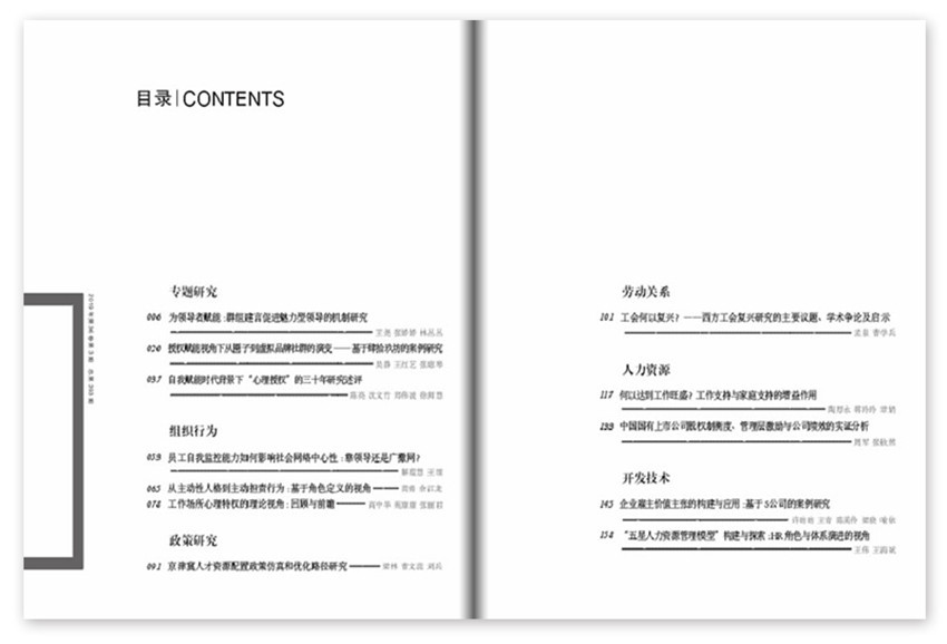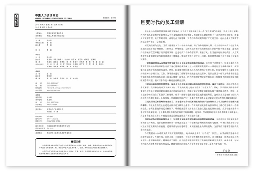 《中國人力資源開發》主要欄目:特稿、專題、研究述評、組織管理、案例研究、政策分析、勞動關系。