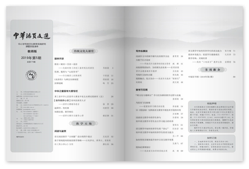 《中華活頁文選》雜志傳承創刊50多年來“文選”特色,以優美、正面、高品質的選文在中小學師生中具有良好口碑。中華國學板塊仰仗中華書局國學實力,形成了文本準確、注譯嚴謹、講解淺易的傳統。
