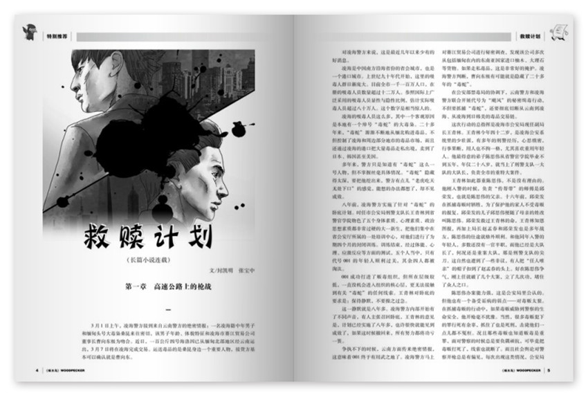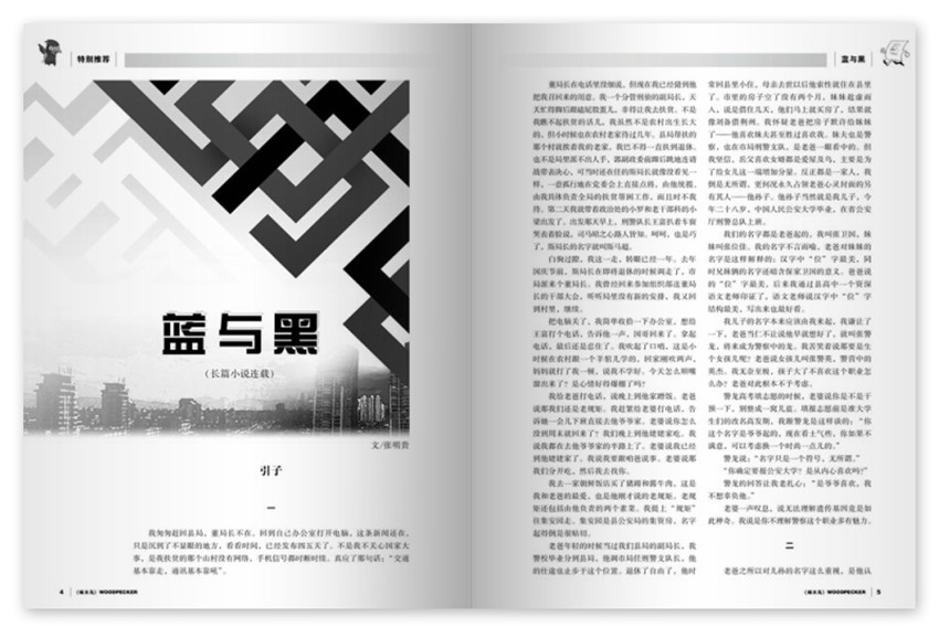 《啄木鳥》(月刊)創刊于1980年,多年來雜志內容及形式方面與時俱進,并以其形式和內容的豐富性及多樣性,贏得了不同階層讀者的喜愛與擁護。《啄木鳥》刊發的作品除多次榮獲“金盾文學獎”“五個一工程獎”以外,還獲得了中國文學界的獎——“茅盾文學獎”。