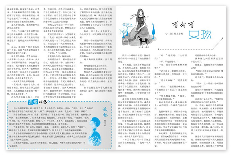 一方面雜志盡量發(fā)出中學(xué)生自己的聲音,這些來(lái)自中學(xué)生親切的文字,就像紫薇藤漏下的陽(yáng)光,照進(jìn)青春初長(zhǎng)成的一顆顆渴望的心房;另一方面,也找到了大師和大俠們青春期的人生經(jīng)歷和思考,作為良師益友的對(duì)照,溫情、勵(lì)志,是中學(xué)生學(xué)習(xí)的好幫手,人生成長(zhǎng)的好助手,生命趣味探索的好地圖。