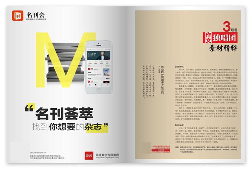《課堂內(nèi)外·作文獨唱團》(月刊)創(chuàng)刊于2010年,多年來雜志內(nèi)容及形式方面與時俱進,并以其形式和內(nèi)容的豐富性及多樣性,贏得了不同階層讀者的喜愛與擁護。大容量與新鮮的視角,暢游值得閱讀的空間,瀏覽當(dāng)月的透徹?zé)狳c,直擊沖擊力的焦點話題;語文不僅僅局限于教科書,語文是人生,是生活,更是社會。